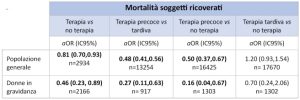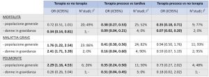 Tra i limiti della RS, gli autori riconoscono l’eterogeneità degli studi, la mancanza di aggiustamento per altri fattori di rischio (fra cui l’utilizzo di altre terapie) e per la diversa propensione all’utilizzo di antivirali nei diversi setting e in base alla gravità della malattia. La tabella 1 riporta alcuni dei risultati più importanti: